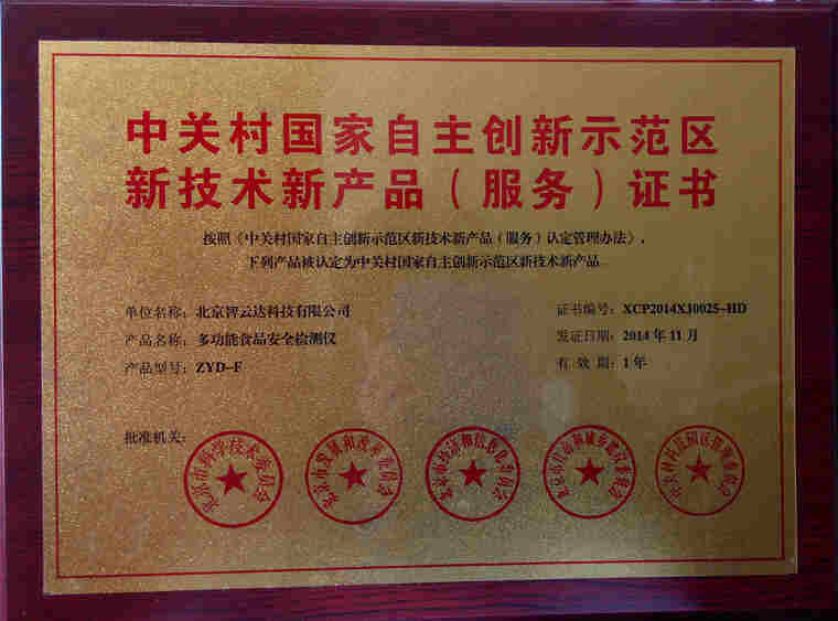 北京智云達科技股份有限公司自2005年開始從事食品安全快速檢測產品的研發(fā),設有專門的研發(fā)機構,建立了一支以食品安全檢測、化學分析、計算機軟硬件以及光學儀器開發(fā)為主的,由多名博士、碩士為核心的高科技人才隊伍。研發(fā)人員具有較深的理論造詣和豐富的實踐經驗,是前沿專業(yè)技術和應用實踐高度結合的研發(fā)隊伍。同時,通過與中國農大食品學院、北大化學學院、國家糧食局標準質量中心、疾控中心等高校、科研單位的教授、專家的廣泛合作,研發(fā)出六大系列食品安全快速檢測產品:食品安全快速檢測試劑盒、檢測箱、食品(農產品)檢測儀器、干化學試紙、獸藥殘留膠體金快速檢測卡及抗生素檢測試劑盒。公司目前已取得各種專利共18項,以及26項計算機軟件著作權登記證書,擁有6大類400余種產品及技術。      尤其值得一提的是,在